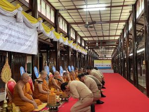 วันที่ 24 กุมภาพันธ์ 2568 เวลา 10.00 น.พล.ต.ต.กิตติ สุขสมภักดิ์ผบก.ภ.จว.เพชรบุรี มอบหมายให้พ.ต.อ.ธีระวุฒิ สุทธิพนไพศาลผกก.สภ.หนองจอกพร้อมข้าราชการตำรวจในสังกัด เป็นผู้แทนเข้าร่วมพิธีถวายภัตตาหารพระราชทานของพระบาทสมเด็จพระเจ้าอยู่หัว แด่พระภิกษุ สามเณร ในการสอบบาลีสนามหลวง ปี พ.ศ.2568โดยมี นาย เลิศชัย สกลเสาวภาคย์รองผู้ว่าราชการจังหวัดเพชรบุรี เป็นประธาน