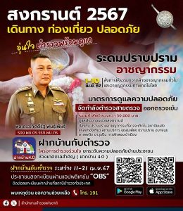 สำนักงานตำรวจแห่งชาติ ออกมาตรการป้องกันและปราบปรามอาชญากรรม ให้กองบัญชาการตำรวจนครบาล , ตำรวจภูธรภาค 1-9 , กองบัญชาการตำรวจสอบสวนกลาง , กองบัญชาการตำรวจปราบปรามยาเสพติด , กองบัญชาการตำรวจท่องเที่ยว , สำนักงานตรวจคนเข้าเมือง , กองบัญชาการตำรวจสืบสวนสอบสวนอาชญากรรมทางเทคโนโลยี และกองบัญชาการตำรวจตระเวนชายแดน จัดทำแผนปฏิบัติการป้องกันปราบปรามอาชญากรรมพื้นที่จัดกิจกรรมสงกรานต์ และระดมกวาดล้างอาชญากรรมทุกประเภท ทั้งอาชญากรรมทั่วไป และอาชญากรรมทางเทคโนโลยี ช่วงก่อนวันหยุดเทศกาลสงกรานต์ วันที่ 1-10 เมษายน 2567