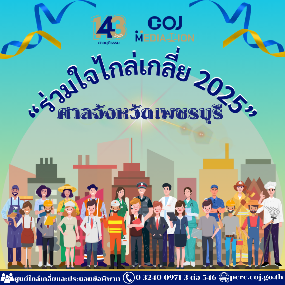จำนวนผู้ชม 43 ศาลจังหวัดเพชรบุรี ขอเชิญเข้าร่วมโครงการ “ร่วมใจไกล่เกลี่ย 2025” ระหว่างว